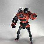 #夜のフィギュア撮影会 #カプコン キカーイオー! 以前の関節では足の重さを支えきれなかったので、クリックが入ってるリボルバージョイントを仕込みました。流石の保持力です。てか、毎回ゴメンね、メトロンさん。