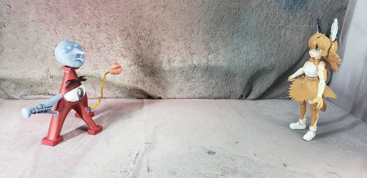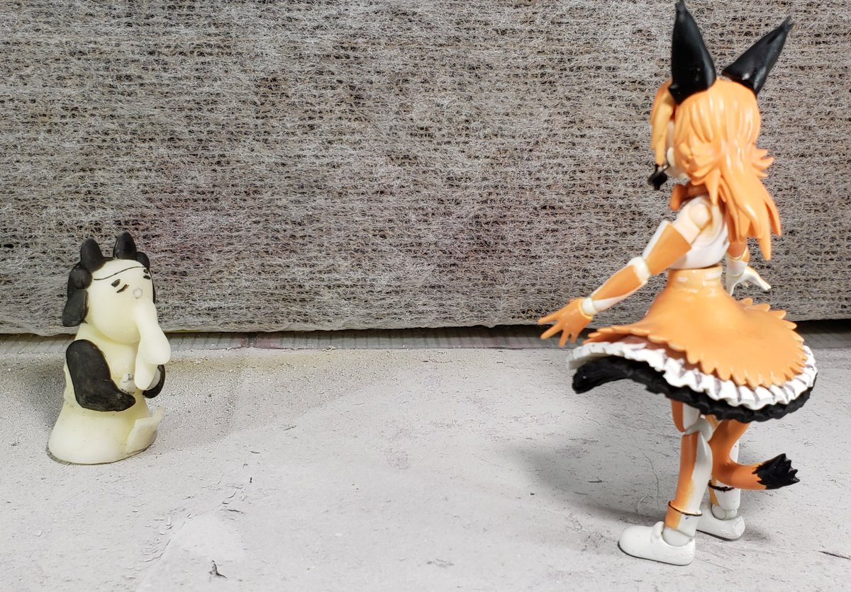 一緒にもすもすさんも3Dプリンターで立体化しました。 狙ったわけでもないのに自分のほうに上手く乗ってしまい、悪魔合体感が増してしまいました。 #カラカル展 #カラ騒ぎ twitter.com/km_kuma2nd/s…
