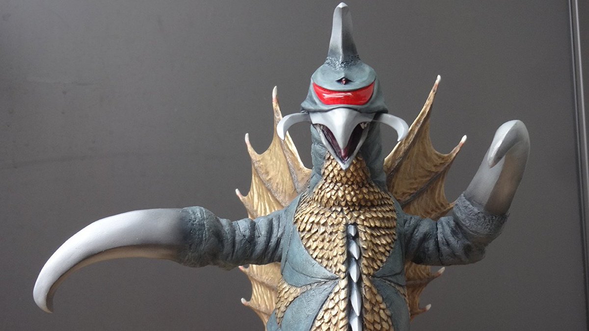 #夜のフィギュア撮影会 お題『フリー』 1/700スケールのキングギドラとガイガン!工場地帯を強襲する凶悪コンビ! ← 設定身長だとこんなにサイズ差があるのだ😄 #東宝怪獣コレクション #キングギドラ #ガイガン #ゴジラ #Godzilla #デアゴスティーニ #DeAGOSTINI #ピットロード #オモ写