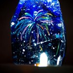 記憶のまち【星空鉱石】 朝日に照らされる星空鉱石は、ライトアップとはまた違う良さがあります♪ 青色がより鮮やかにハッキリと見えガラスの透明感も綺麗ですね✨ #ハンドメイドブルー #ガラス