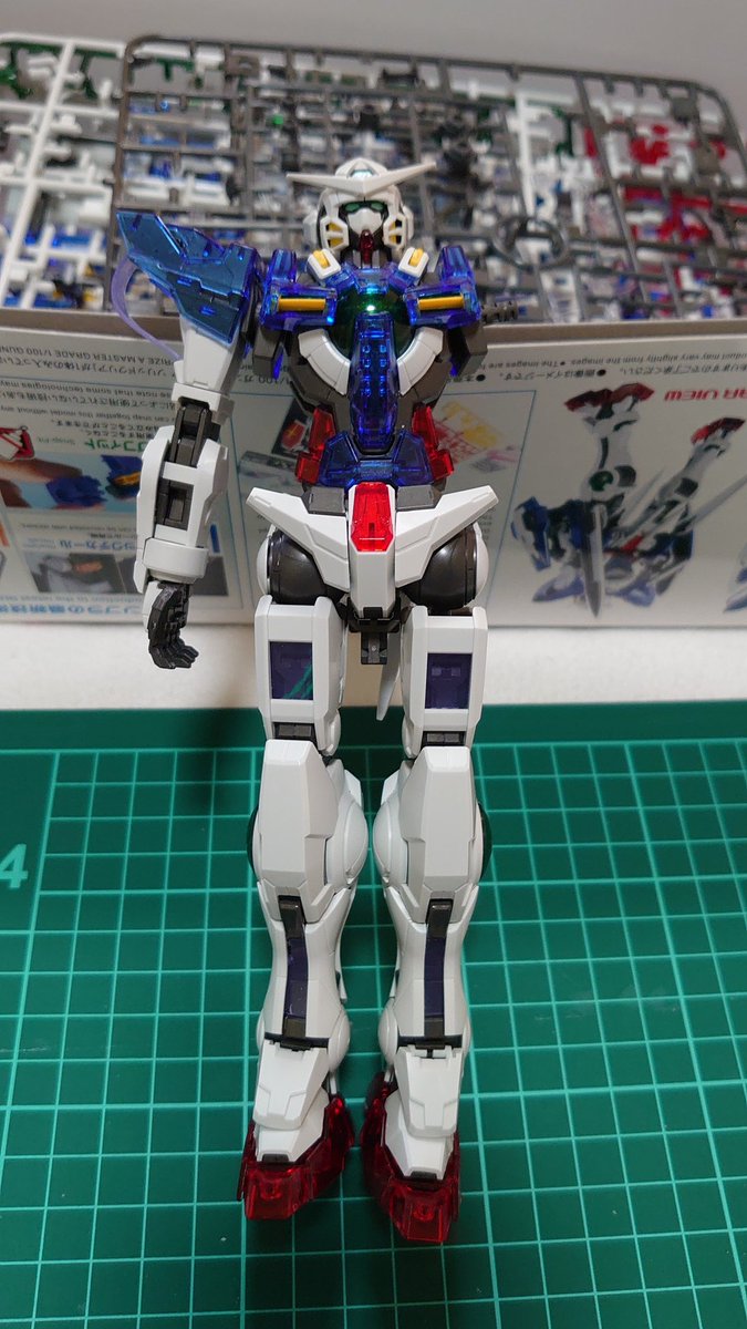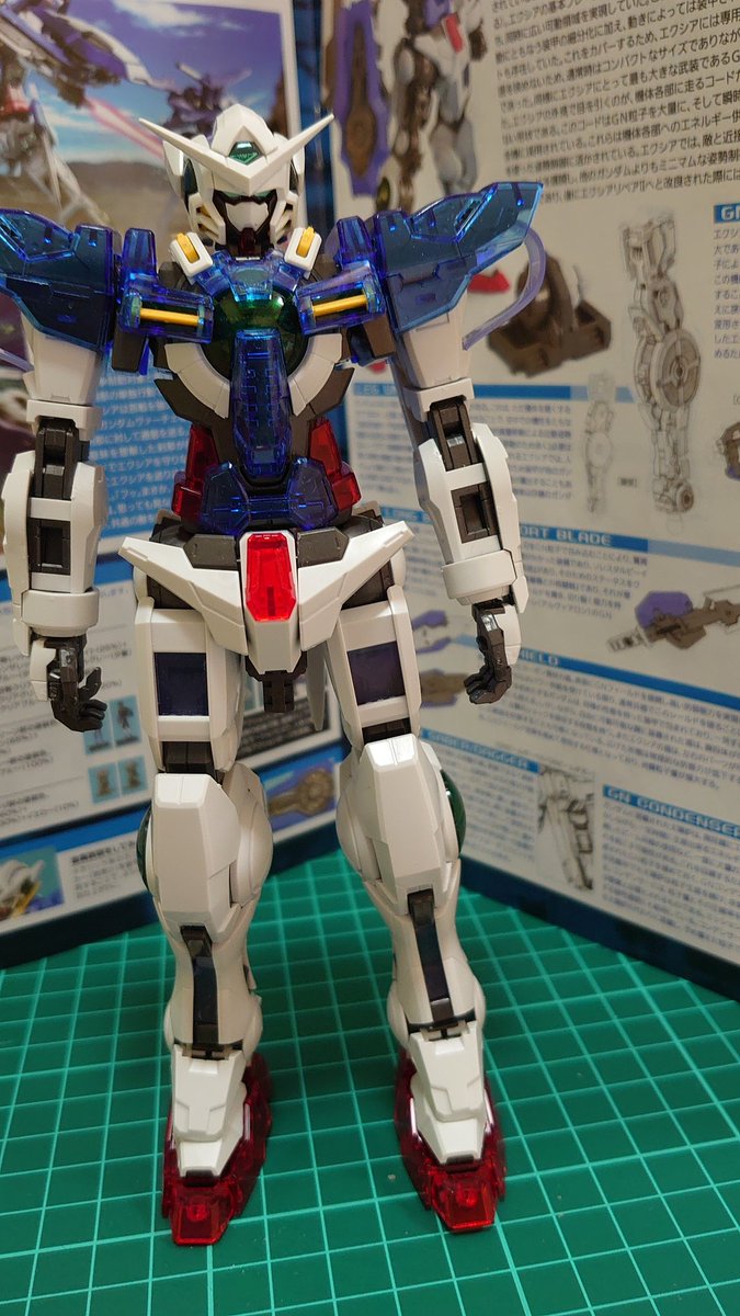 そんな感じにRGエクシアさん完成 以前作ったRGマークII基準で考えると、思ってた以上に大変でしたw でもパーツ紛失や破損しなかったので結果オッケーでw 息抜きに改造とか何も考えず、マニュアル通りに作るガンプラも面白かったですわー♪ #ガンダムエクシア #ガンプラ好きとつながりたい