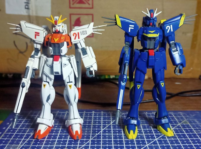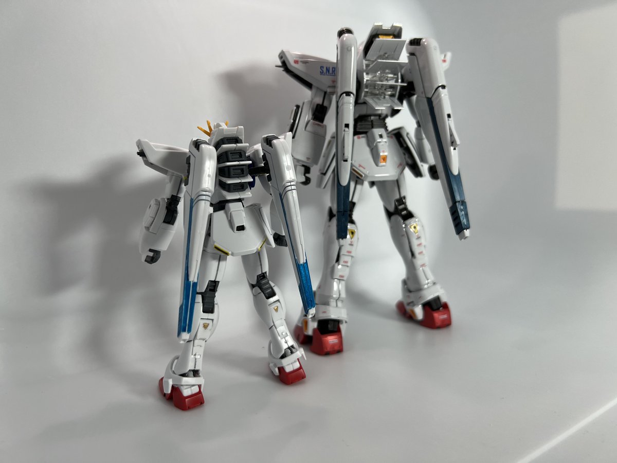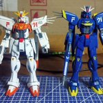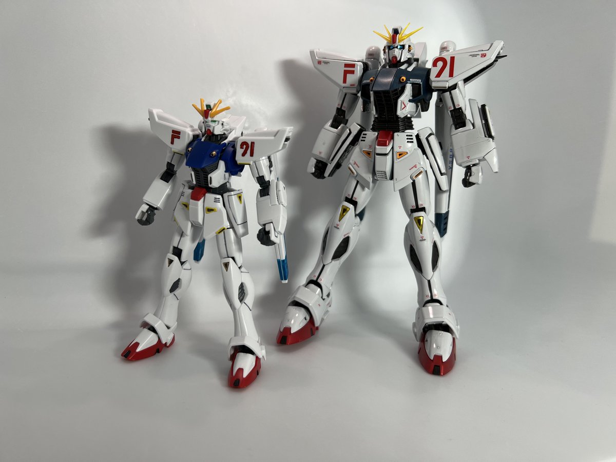 MG #ガンダムF91 Ver2.0(チタニウムフィニッシュ)との比較、こうしてみるとやはりMGはすごいな。 #F91 #ガンプラ #ガンプラの画像を貼るとRTされると聞いて #ガンプラ好きな人と繋がりたい
