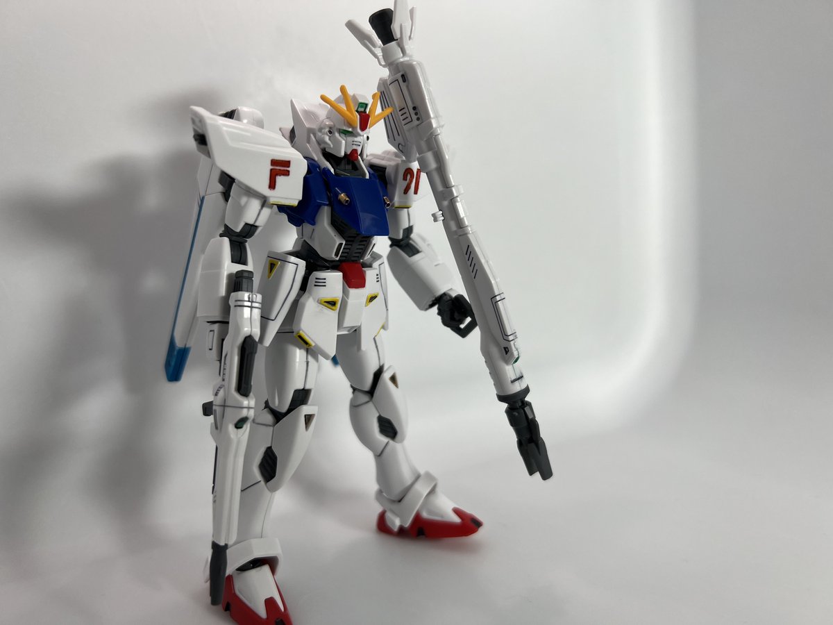 ビームライフル、ビームランチャーを持たせるとこんな感じ。ビームランチャーの全長結構長いよな。 #F91 #ガンダムF91 #ガンプラ好きな人と繋がりたい #ガンプラの画像を貼るとRTされると聞いて