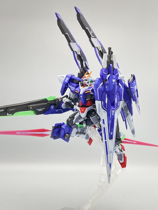MG ダブルオーライザー 完成! 表面処理からディテールアップまで、今できるベストを尽くしました✨ 膝だけセブンソード仕様なのがコダワリ。 #ガンプラの画像貼るとRTされると聞いて #ガンダムOO