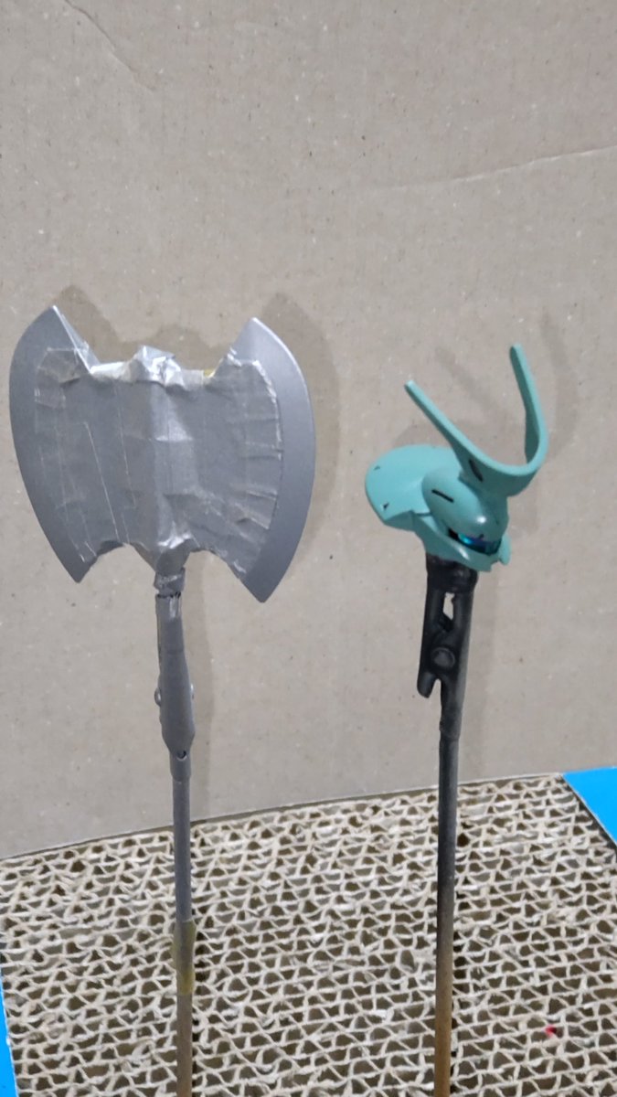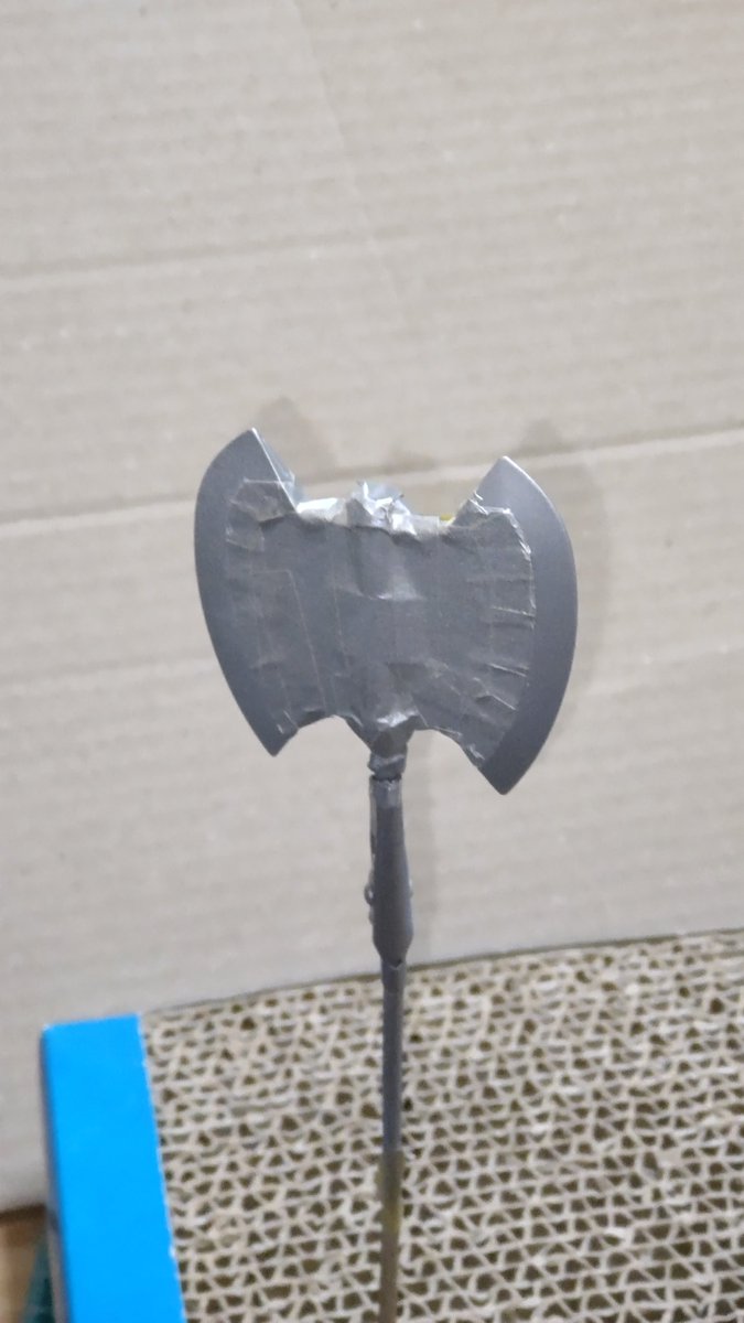 #ガンプラ #ガンプラ好きな人たちと繋がりたい #ガンプラの画像貼るとRTされると聞いて #ガンプラ塗装 #ガンプラ好き #水星の魔女 「HG ディランザ・ラウダ機」の大型ヒートアックスの下地塗装中。ベースホワイトにシルバーで。黄色系は綺麗に発色させるのが難しいですね。