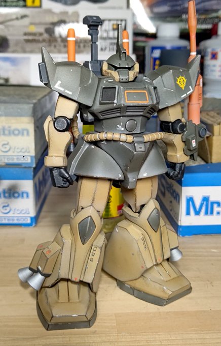 #ガンプラ #ガンプラ好きな人と繋がりたい #ゲルググ 昨日のデザートゲルググの股関節破損のツイートが凄い伸びててビビってますがデザートゲルググは無事に大地に立っております😅瞬着で固めました!基本動かさないのでそこまで支障はないです😊