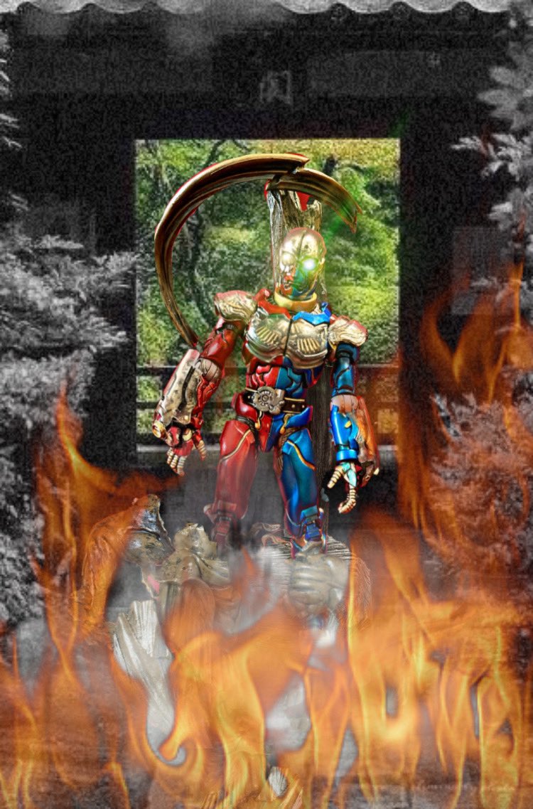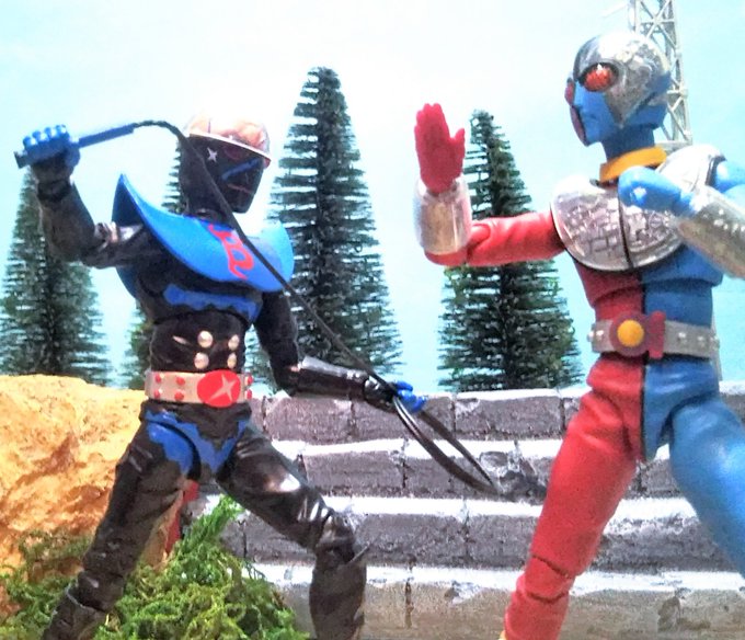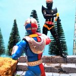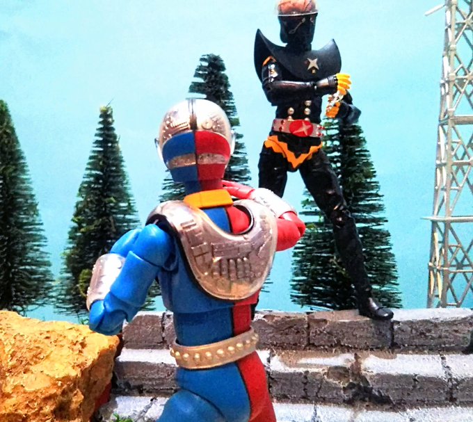 #夜のフィギュア撮影会 お題「フリー」(以前投稿しそびれたお題『影』を兼ねます。過去。) キカイダー01の目の前に立ちはだかる、世界大犯罪組織シャドウの幹部、 ギル・ハカイダー! #キカイダー01