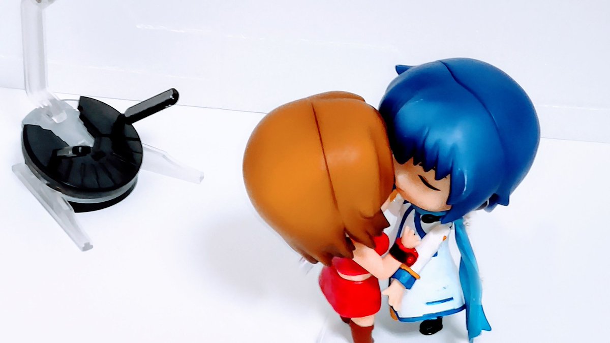 #深夜のねんどろ撮影60分一本勝負 5/23 お題【きす】フライング 今日はキスの日と言うことで…。 今回お迎えしたこの子はキスによって魔力供給するようですが…美遊ちゃん困り顔ですが…。 #プリズマイリヤ #キスの日