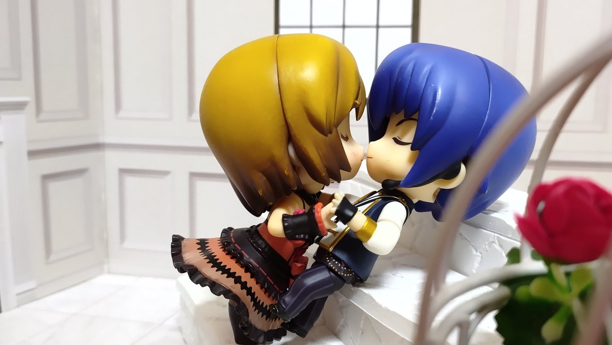 5/23【キス】(既出・フライング) #5月23日はカイメイの日 で #キスの日 なので いちゃいちゃし放題❤← #カイメイの日2022 #ねんどろいど改造 #VOCALOID #カイメイ #KAITO_3 #MEIKO_3 #KAITO #MEIKO #深夜のねんどろ撮影60分一本勝負
