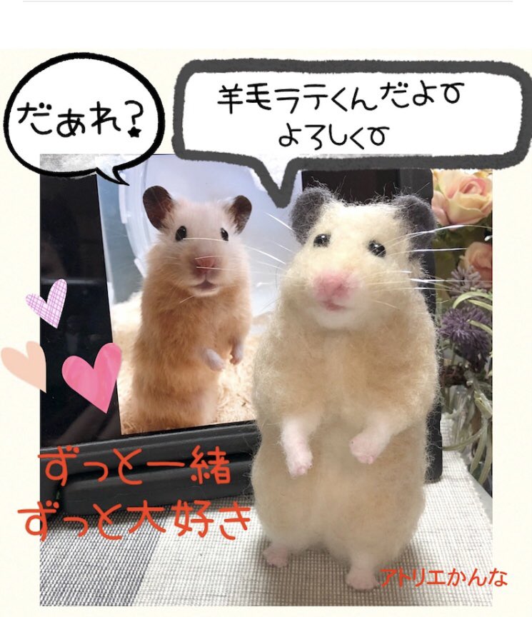 ラテちゃんが旅立ちました🐹🌈 先日、作らせていただいた羊毛フェルトラテちゃんと面会してくれたばかりでした。 ラテちゃん、お空で家族🐹ちゃんたちと会っているかな。 #キンクマハムスター #羊毛フェルト twitter.com/MEGU31476857…