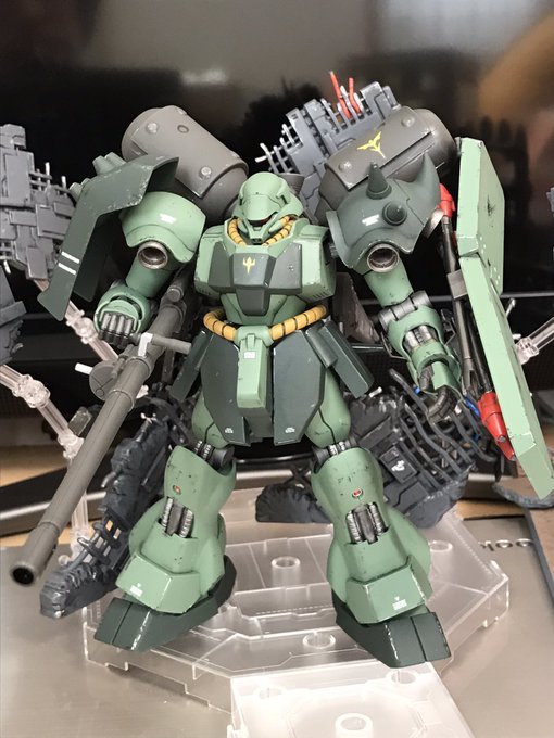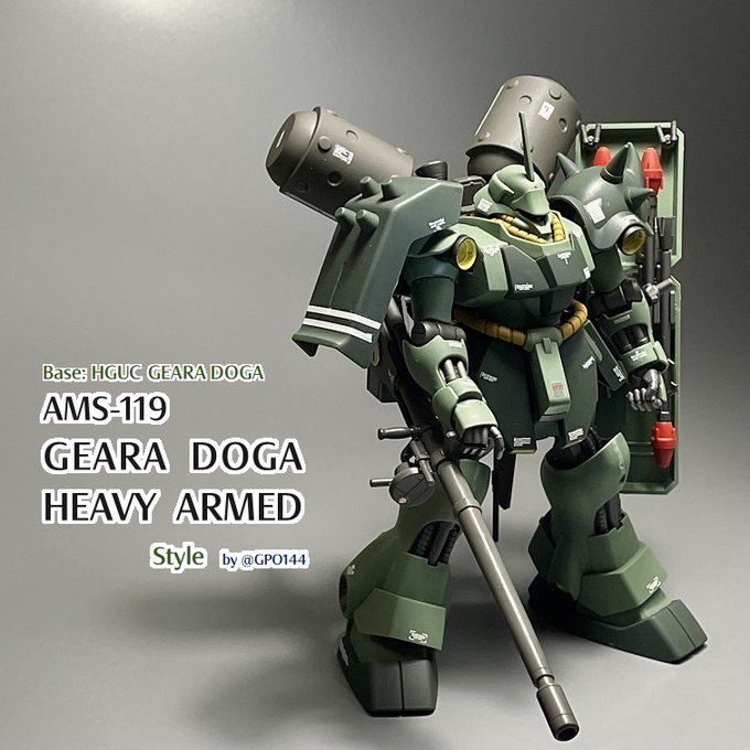 重装ギラ.ドーガ 改、出来ました! 前に作っていたギラドーガ にアンジェロ専用ギラ.ズールからランゲ.ブルーノ砲.改を拝借^ ^ 長物は迫力があっていいなぁ♪ #ガンプラ好きな人と繋がりたい #ガンプラの画像を貼るとRTされると聞いて #ガンプラはどんな発想で作ってもいいんだ #ギラドーガ