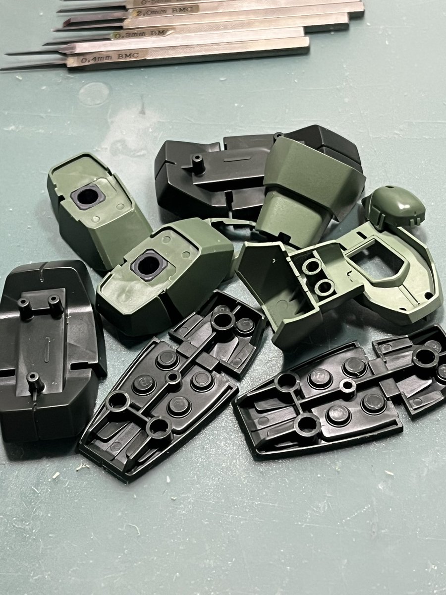 おはよー\(//∇//)\ 朝プラやってまーす。 この機体どうやって良いのか全くわからんから、いつもと同じ様に改修する事にしまそた。腰4㎜、膝関節接続部2㎜、太腿1㎜幅増し(まだ片方だけ) おっ良いんじゃね あぁ〜八展行きたい(心の声) #ギラドーガ #ガンプラ好きな人たちと繋がりたい #ガンプラ
