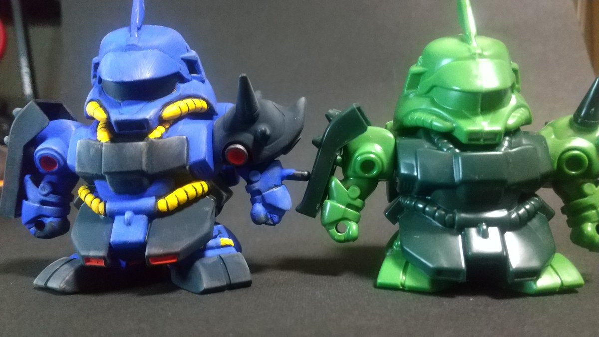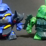 #ギラ・ドーガ #SDガンダム #アクリルガッシュ+#タミヤウェザリングマスターA で2時間程で完成 股関節を新造して等身を伸ばしてみた 逆シャア旧キット箱絵の荒々しいイメージで仕上げてみた ガッシュはお手軽でいいすね #ガンプラ好きと繋がりたい #ガンプラの画像貼るとRTされると聞いて