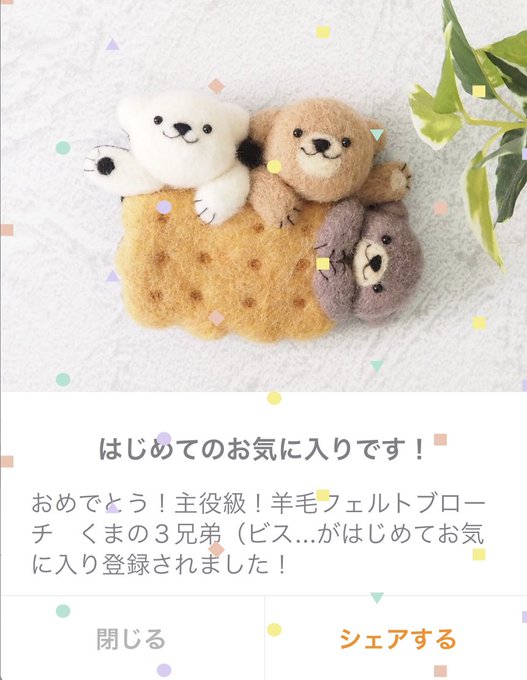 主役級!羊毛フェルトブローチ くまの3兄弟(ビスケット)がはじめてお気に入り登録されました! #minne_fav minne.com/items/33182198… ありがとうございます🥹💕 すごく可愛いので嬉しい❗️ minne.com/@kumamia #羊毛フェルト #くま #ハンドメイド #ビスケット #クッキー #世界に一つ