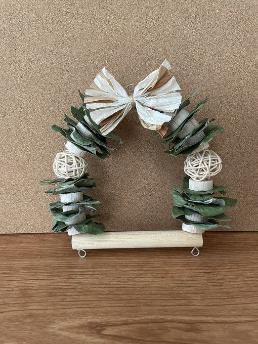 愛鳥さんへのクリスマスプレゼントになるようなブランコとおもちゃのクリスマスボックスを製作中です🎄 まずはブランコ♪クリスマスリースみたいなブランコを作りたくて出来上がったのがこちらです🐥 #鳥 #インコ #ブランコ #クリスマスボックス #クリスマスプレゼント