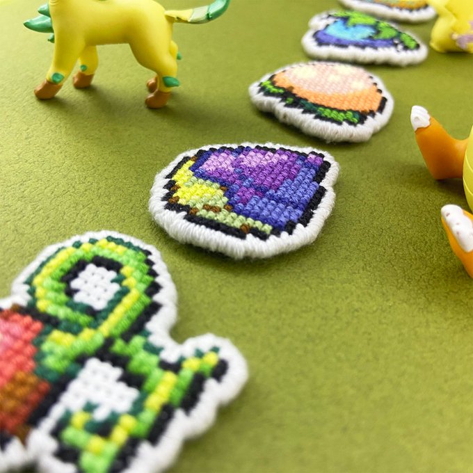 こまか #クロスステッチ で北欧文化や自然を色鮮やかに描いた刺繍ブローチやヘアゴム、キーリングを作っています🪡 新作はサウナモチーフのキーリングと、星座のブローチ🌟 ▼gallery minne.com/items/7142476 @Lupopo_cafe いつもありがとうございます💫 #刺繍 #embroidery #pixelart