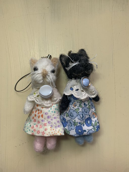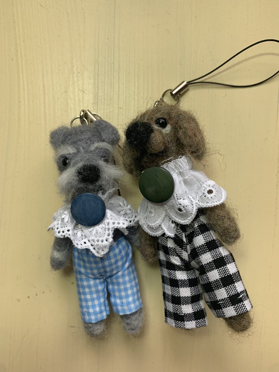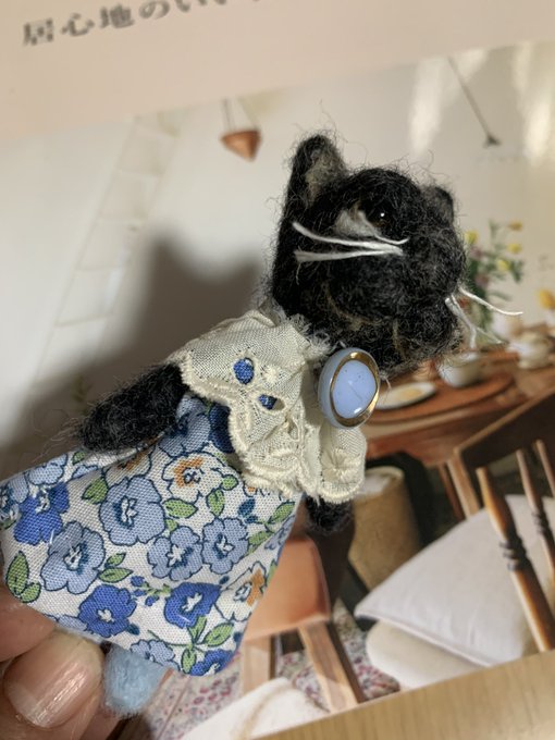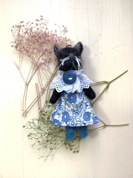 春を意識したんです。お洋服。 本日、委託先に発送しました。 #白猫 #クロネコ #ダックス #シュナウザー #猫好きさんと繋がりたい #犬好きさんと繋がりたい #羊毛マスコット #羊毛フェルト