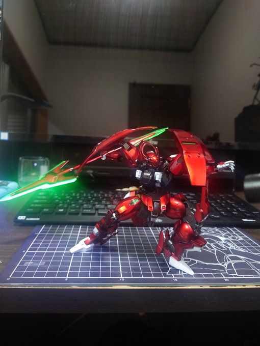すみ入れとゲート跡リタッチ出来た うん、良くなったはず! 頭のモフモフは赤ですみ入れしたが あまり目立たんかな😅 楽しいなー、色の残し具合とか 色々考えてしまう #ガンプラ #ディランザ #水星の魔女 #グエル・ジェターク #ガンプラの画像貼るとRTされると聞いて