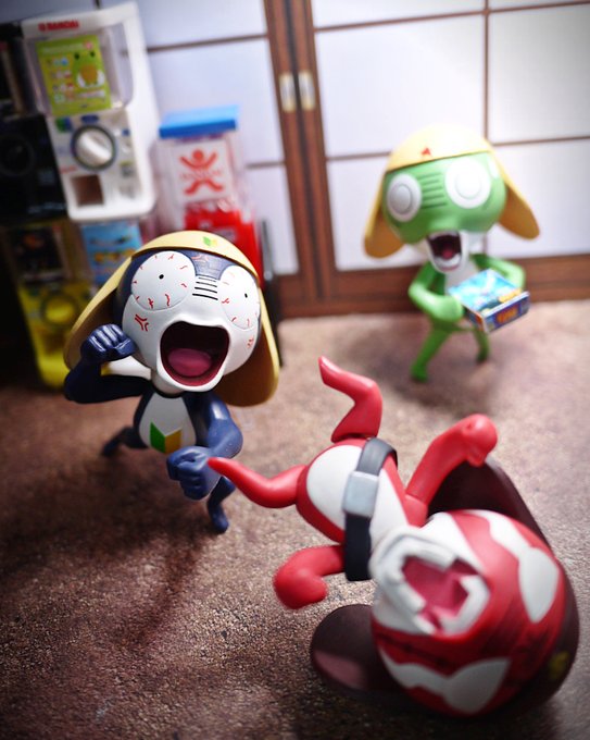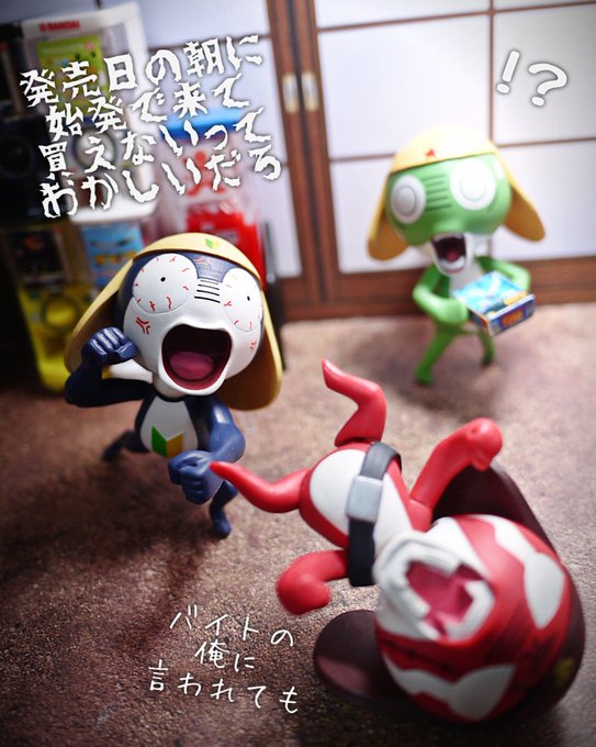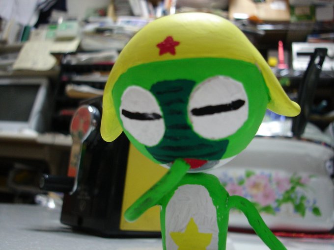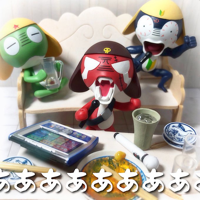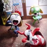 イチニッキュ〜♪イチニッキュ〜♪軍曹お誕生日おめでとう〜!>RT (写真は息子のために15年くらい前にわしが作ったケロロと、ワンフェスで購入した #きういどーる さんのケロロたち) #ケロロ生誕祭2022 #ケロロ軍曹