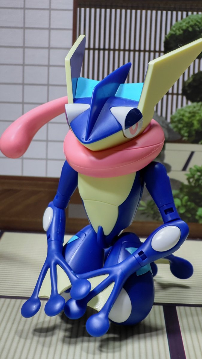 グリグリ動くゲッコウガが1400円で買えるという。 良い時代になったもんだ(笑) あとこんな畳の部屋が似合うフィギュア・プラモもそうそうない(苦笑) #オモ写 #ポケモンプラモコレクション #ゲッコウガ