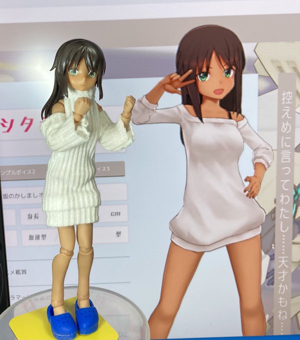 アヤツキパチ組み素体完成~ コトブキヤさん、なぜ #フレームアームズ・ガール と #メガミデバイス のサイズは違うのですか…? すぐみ「ギア装着したら同じくらいになるっスよ」 あ、#コトブキヤ70周年 おめでとうございますm(__)m #金潟すぐみ #源内あお