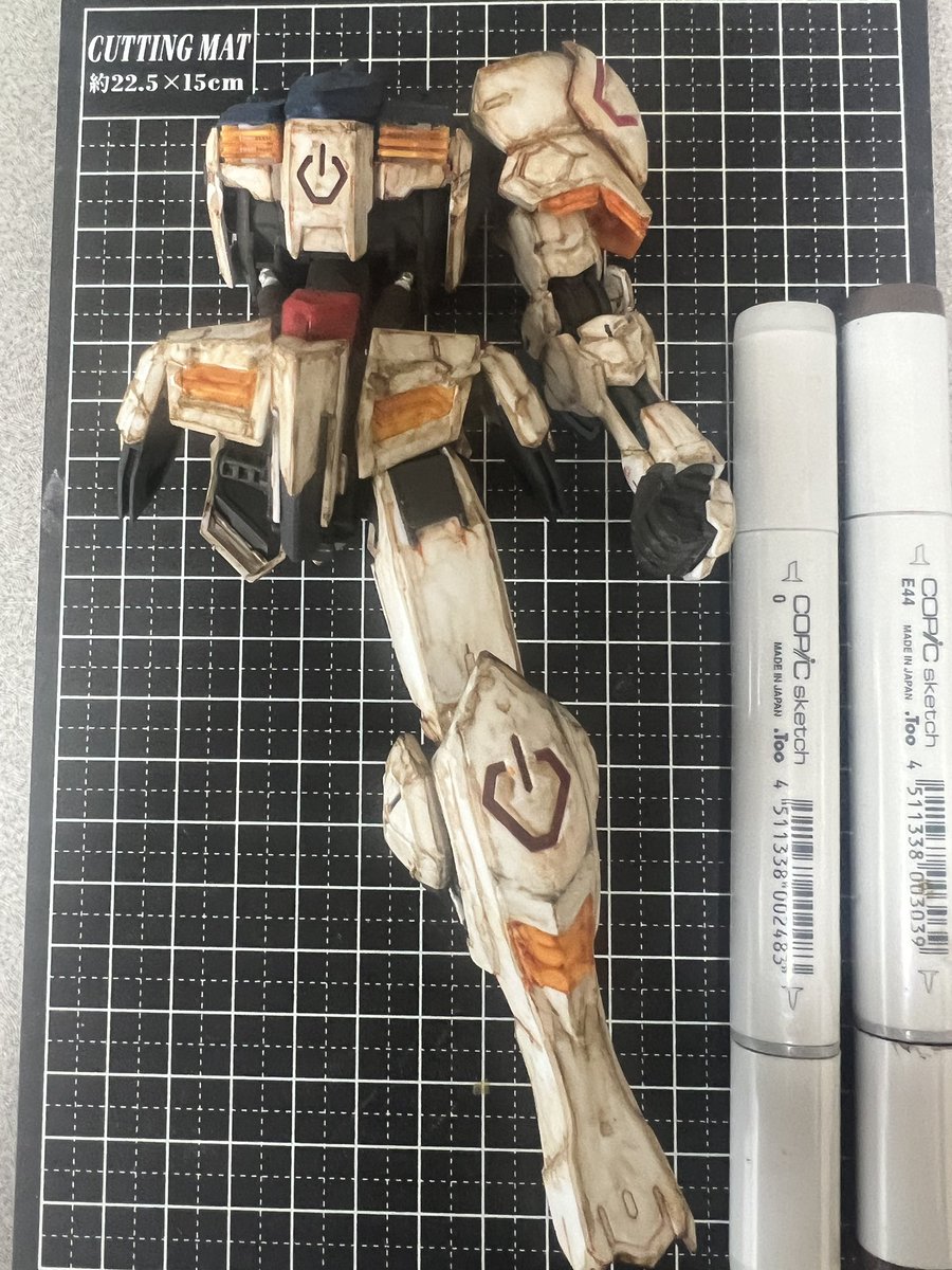 昨晩から製作を開始した1/144HGガンダムエアリアル😓 成形色&付属シール⏩艶消しクリアを吹付⏩その後小手先技術を総動員😅 漸く観れる形と成りました😅 #機動戦士ガンダム水星の魔女 #HGガンダムエアリアル #筆塗り #ガンダムマーカー墨入れ用とメタリック系 #コピック #web模型展示会龍田姫の集い