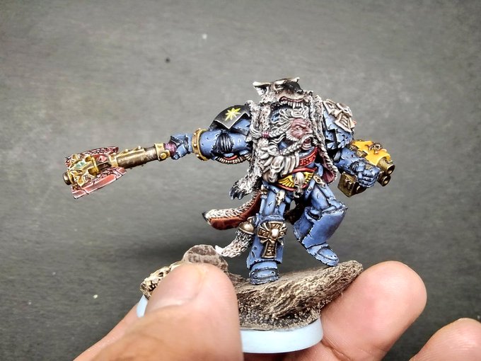 【Warhammer40k】『ローガン・グリムナー(旧ミニチュア)/スペースウルフ』*牙やシワ、ダメージアーマー全て筆描きこみました( v^-゜)♪ #ウォーハンマー #warhammer #筆塗り #ゴールデンウィークSNS展覧会2022