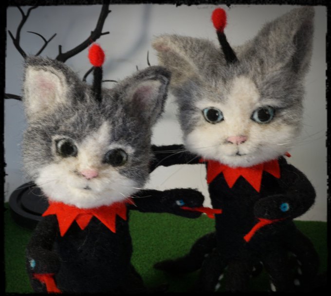 GW最終日に間に合った。 大好きな画家のヒグチユウコさん描くところの「ギュスターヴくん」を羊毛フェルトで作りました。 試作1号と2号。もっと上手に作りたいので試作を重ねるかどうか。悩む。 #ゴールデンウィークSNS展覧会2022