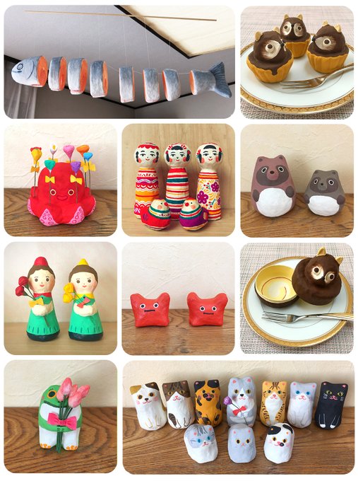 粘土で作った型に、 でんぷん糊で和紙を貼り重ねていく "張り子(はりこ)”の技法を使って 作品をつくっています。 かわいいのとか、愉快なのとか、 美味しそうなのとか、いろいろと!✨💪☺ #ゴールデンウィークSNS展覧会2023 なんかいいね✨☺️👍 って思ってもらえたら嬉しいです!