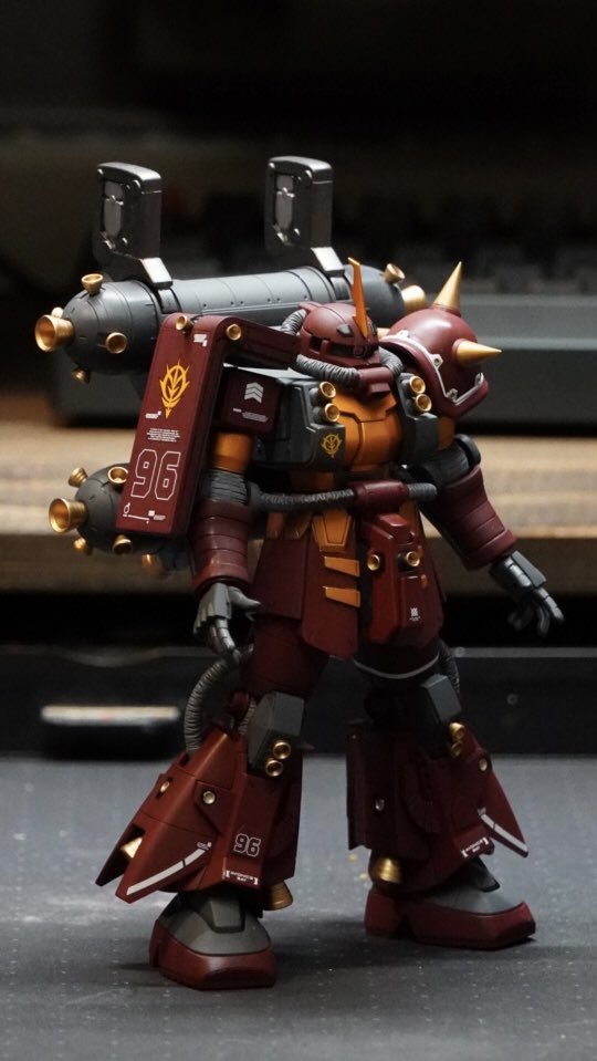 HGサイコザク❶ psycho zaku 塗装は全て筆塗り 機体はキャンディ塗装 武器類は艶消しに 改造箇所 サブアーム 足スラスター可動 大型タンク増設 詳細はツイートの番号から #ガンプラ #サンダーボルト #サイコザク #ガンプラ好きと繋がりたい #ガンプラ改造 #ガンプラの画像貼るとRTされると聞いて
