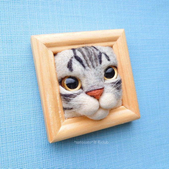 昨日の子は可愛い #サバトラ になりました🐱💕 #羊毛フェルト #猫フレーム #クリマ(M-621,622) #猫好きさんと繋がりたい twitter.com/fujita_satomi/…