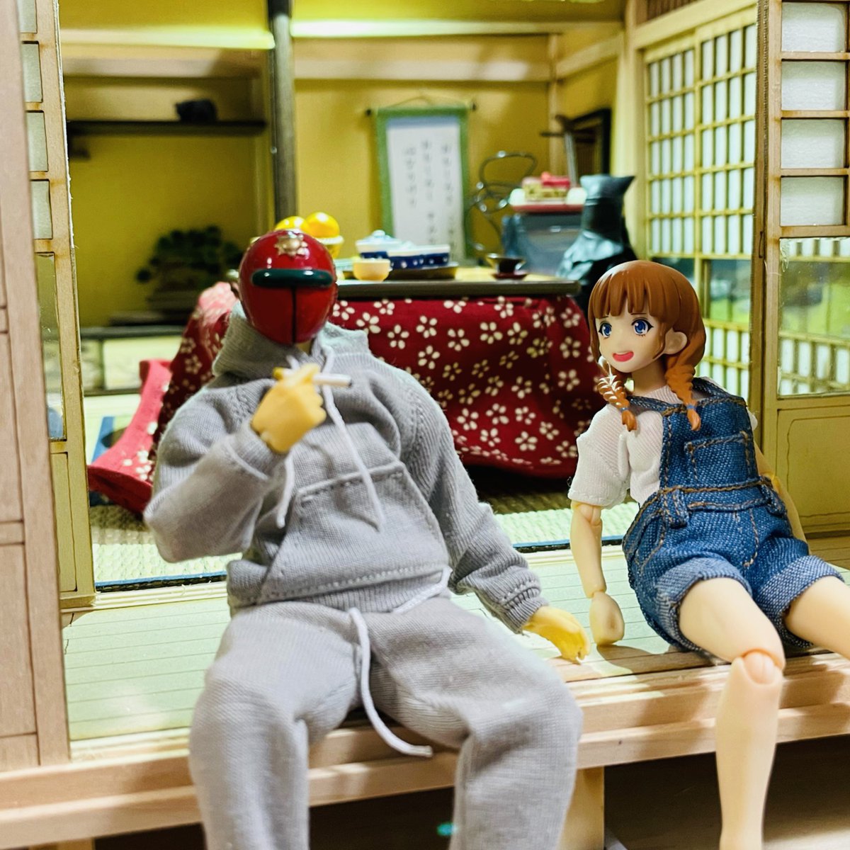 #夜のフィギュア撮影会 11/4 お題 『推しフィギュア』 figma 天体戦士サンレッド。 今日は悪の組織フロシャイムのヴァンプ将軍と談笑中。 何を話しているか気になる黒衣の図。 (サンレッドってどのくらい認知度あるんだろうか・・・) #サンレッド #天体戦士サンレッド #ヴァンプ将軍