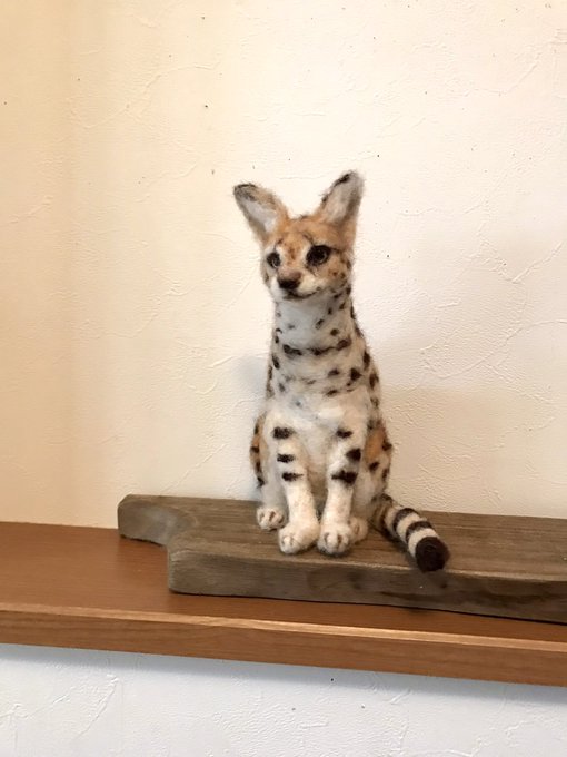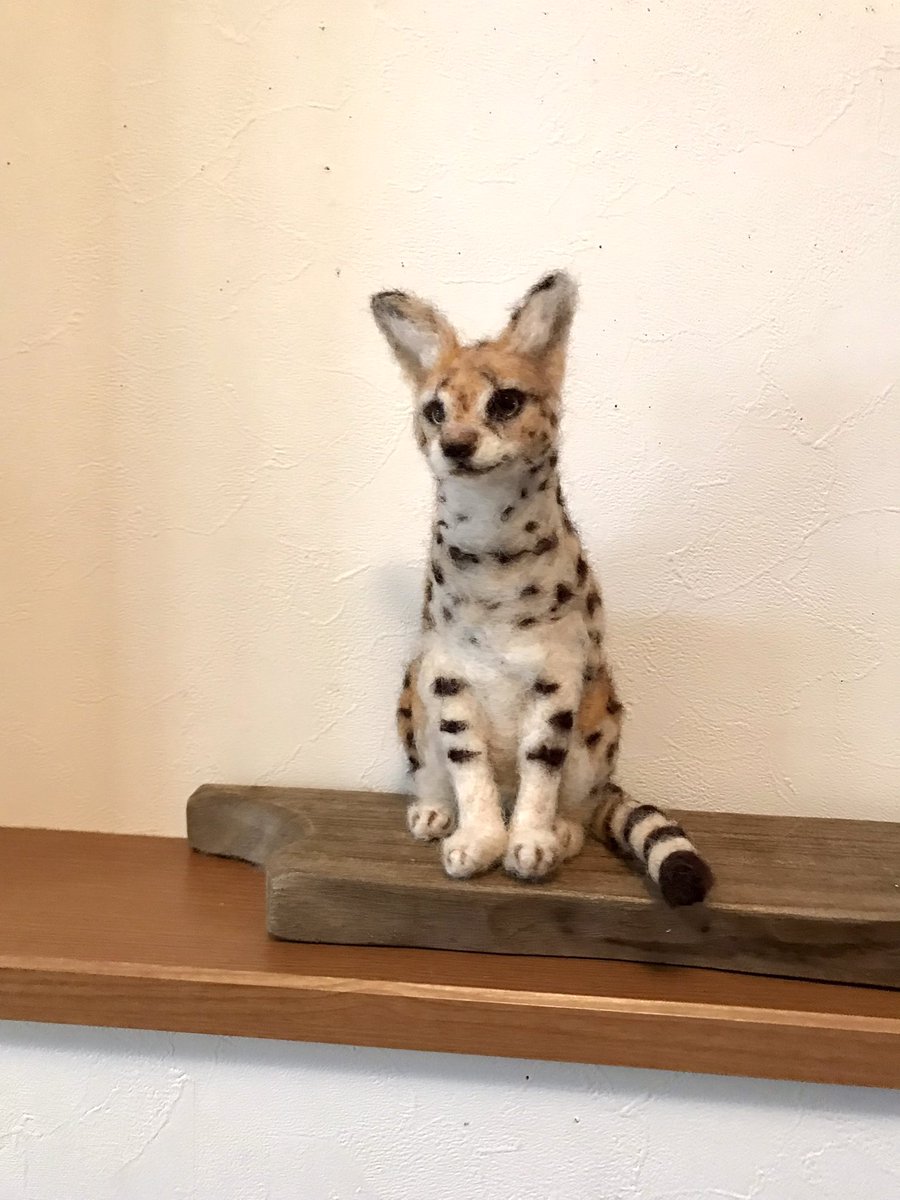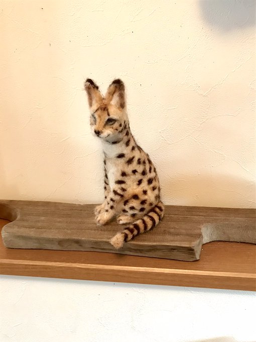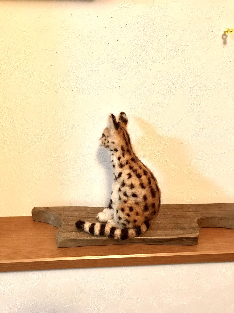 いちばんお気に入りの構図がこちら☺️ 羊毛フェルトはじめて476日目、今まで作った中でようやく、満足できるものができました。でももっと上手になってから #サーバルキャット 再チャレンジしてみたいな😌 #羊毛フェルト下手くそ選手権 #羊毛フェルト