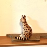 教室ワイヤー4体目、#サーバルキャット の横座りポーズ完成です☺️ ベンガルさんより模様が単純なので簡単かなと安易に始めたら大変も大変…😨身体も大きいポーズも難しい…三ヶ月かかりました💦 #羊毛フェルト下手くそ選手権 #羊毛フェルト