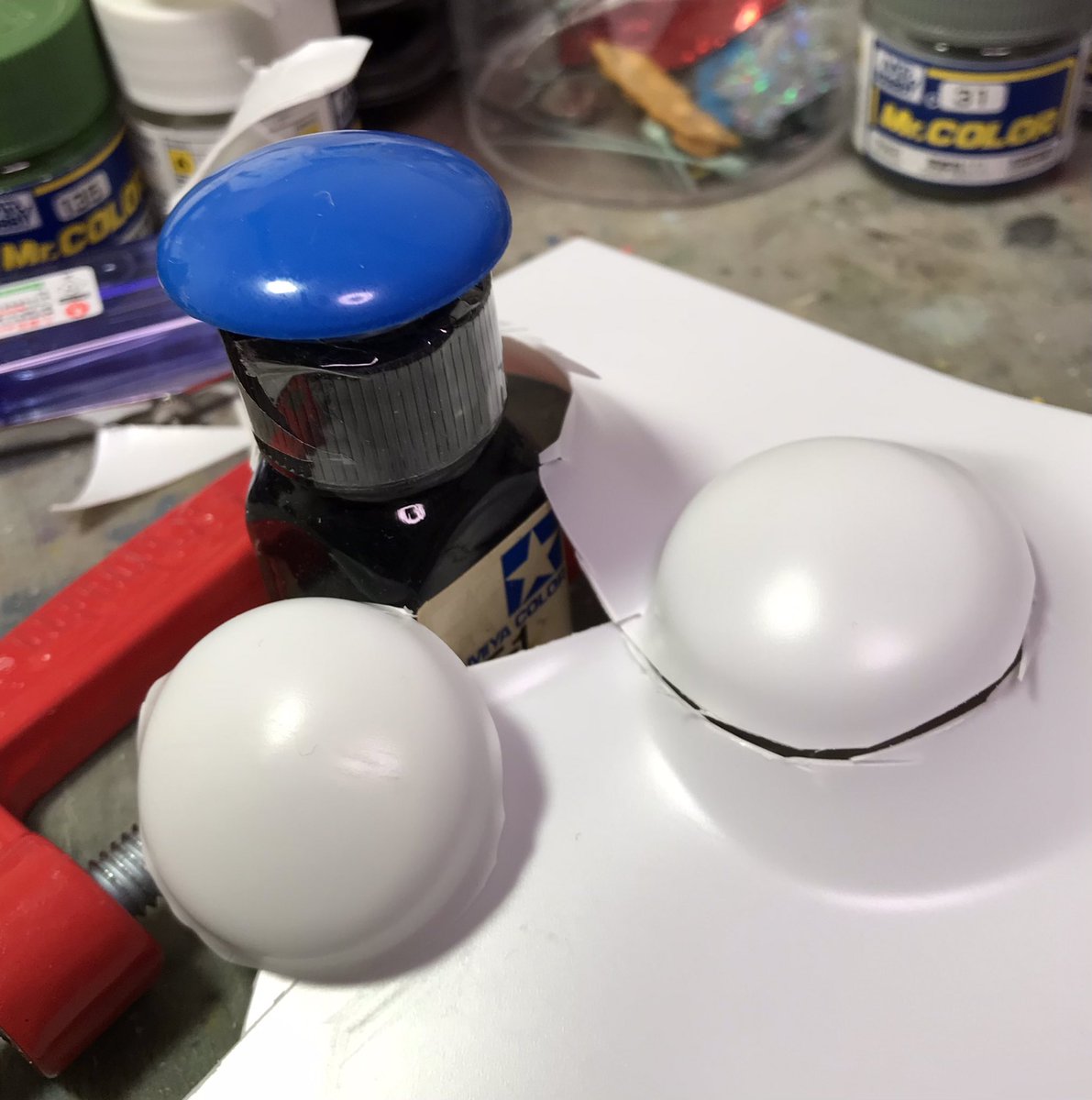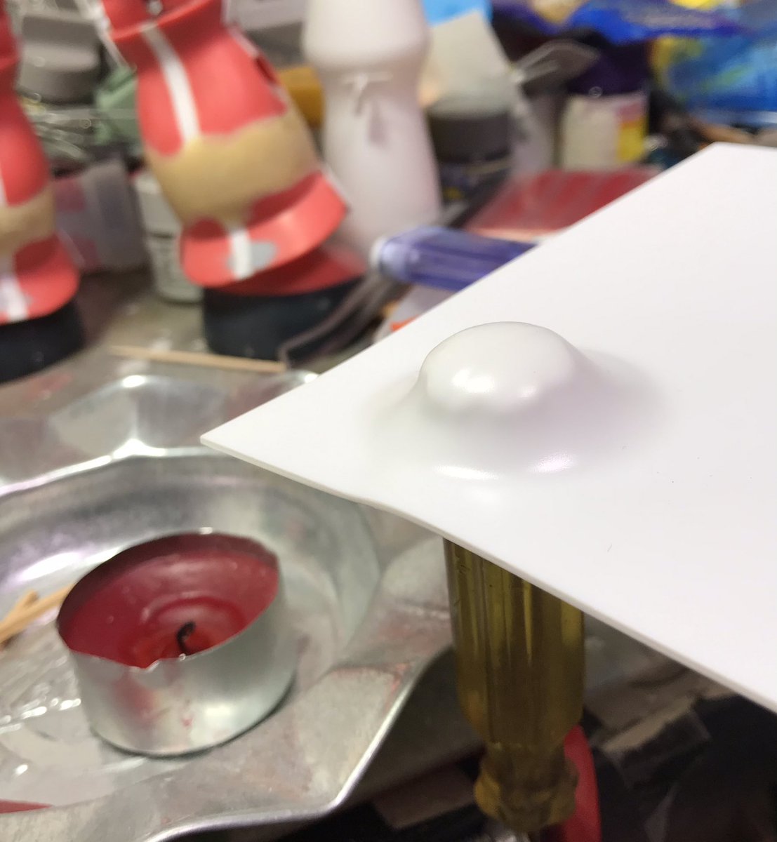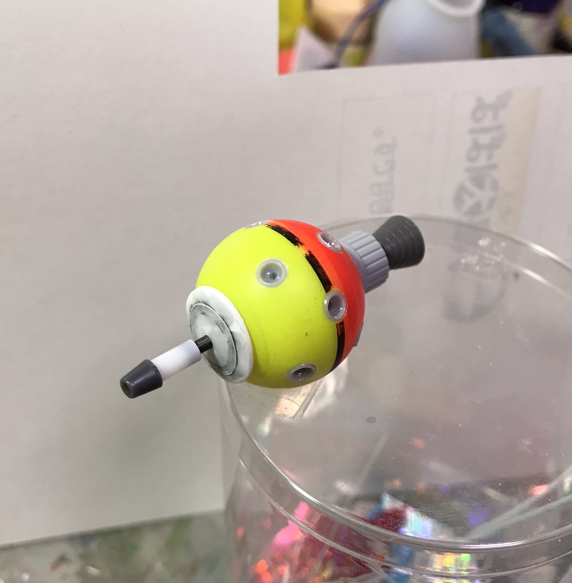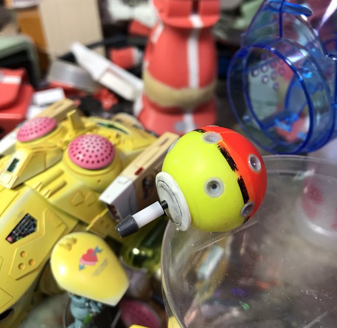 ザクレロです 模型の神様の囁きで、ザクレロ追加装備製作してます。 ウキを使って、搭載する試作実験ユニットを作ります。 ウキに穴開けてディテール入れたプラ棒を刺します試作兵器なので制御ノズルは少なくしました。 そうです脳波制御のアレです😁 #ガンプラ好きと繋がりたい #ザクレロ