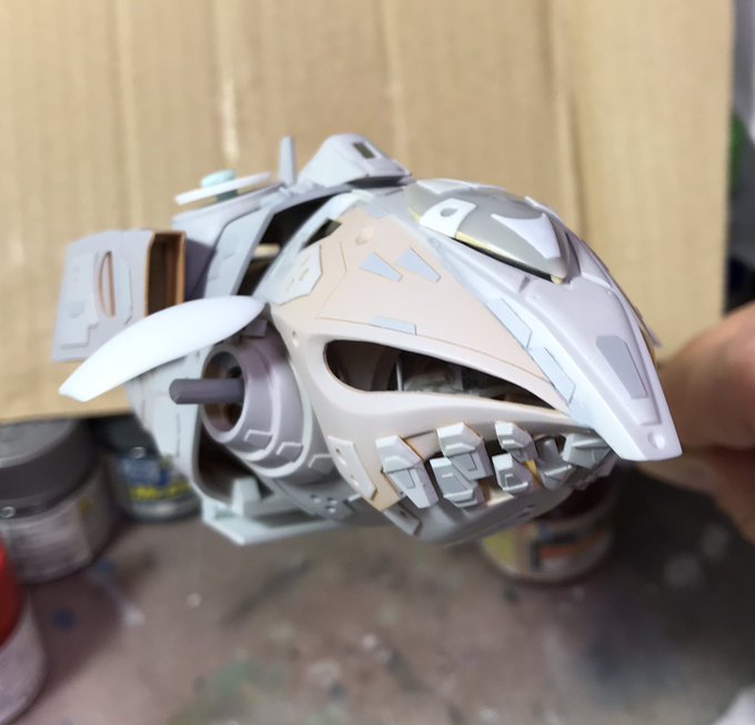 ザクレロです。 仮止めだった歯をポリデント(エポパテ)で、位置決めしながら固定、お腹のヤクルトにディテール入れました。 まるで人型決戦兵器の口のようです… #ガンプラの画像を貼るとRTされると聞いて #ガンプラ #ザクレロ