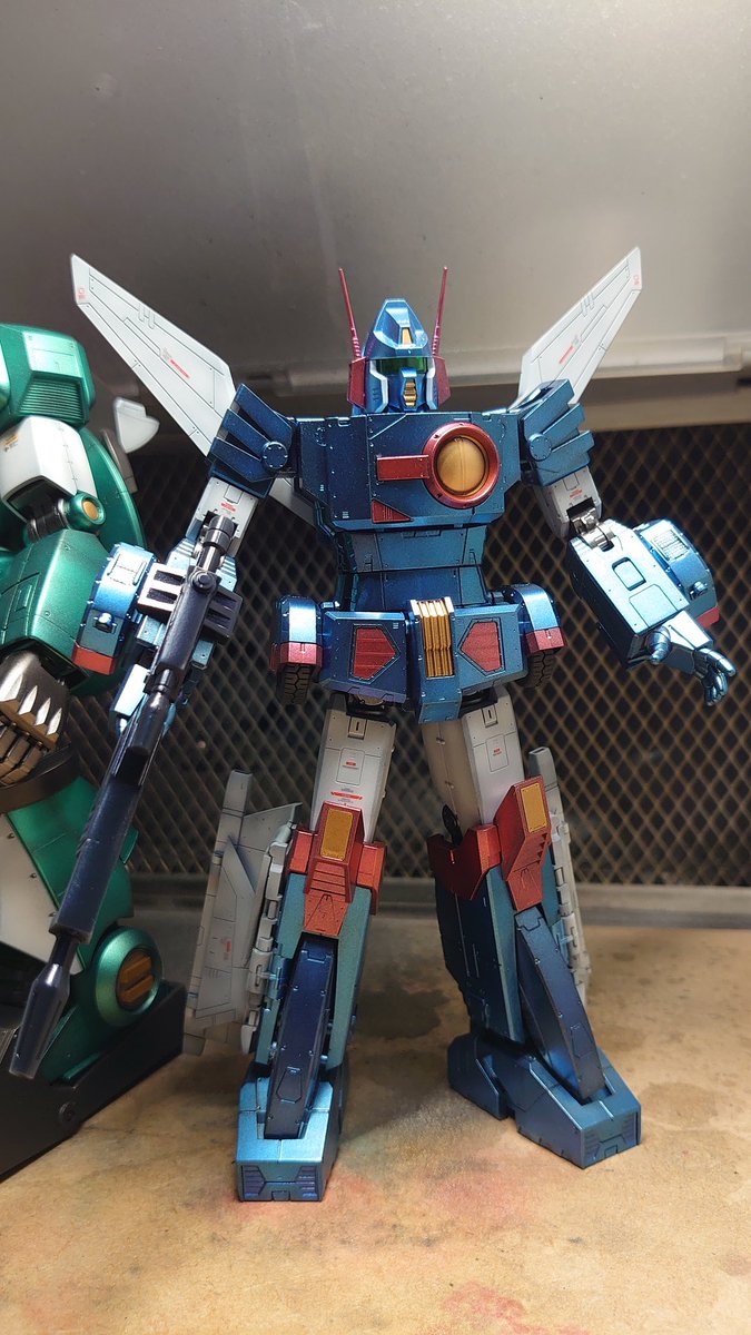 ハセガワ1/72ザブングル 完成しました。 照明が下手くそなので後日自然光で撮ろうと思いますが完成報告です。 従来のロボット物と雰囲気を変えたかったので、使い込んだメタリックブルー塗装で自動車のイメージ重視です。 ロボット物プラモとしては最高の造形です。 #ザブングル #ハセガワザブングル