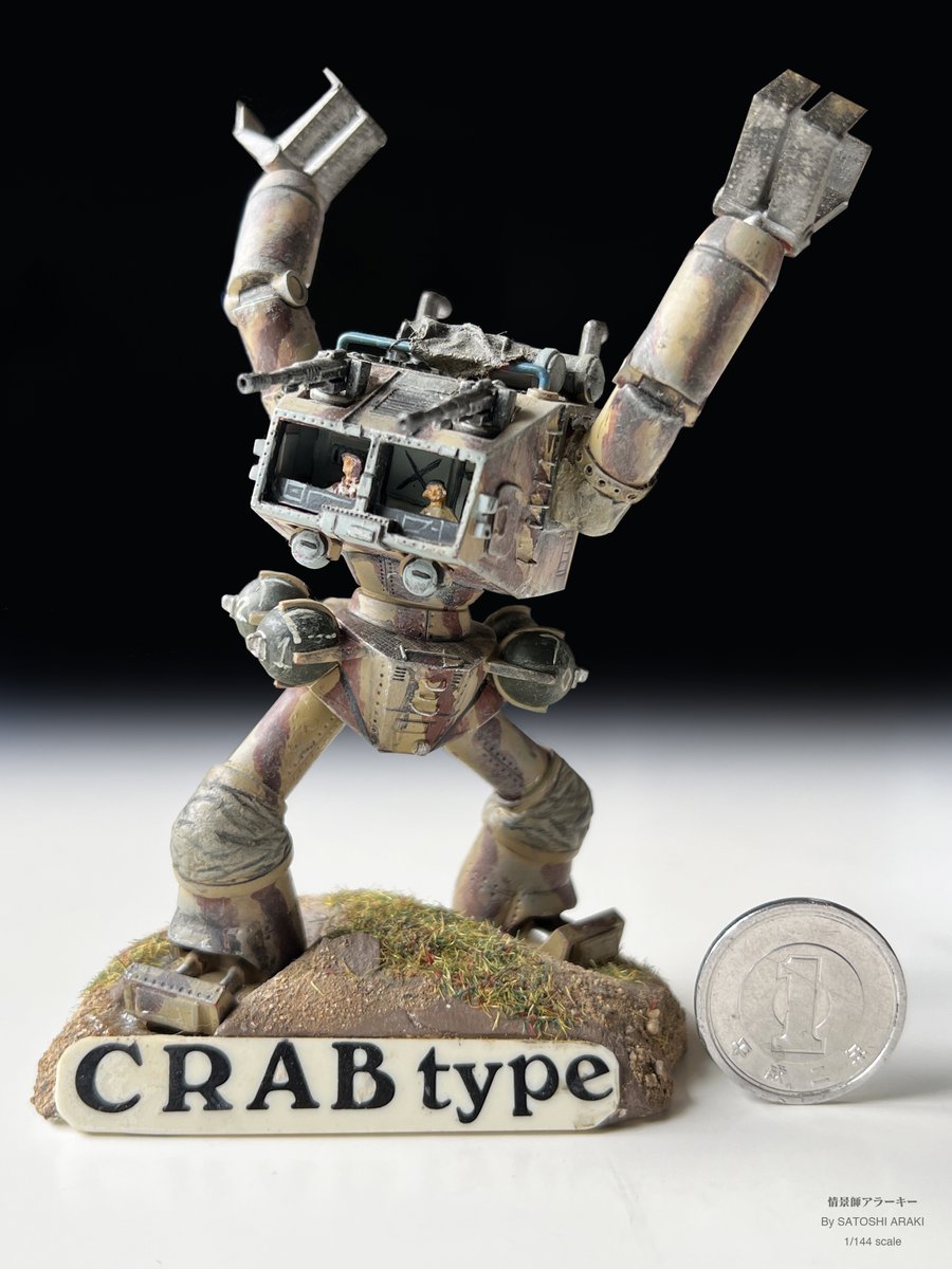 【戦闘メカ ザブングル放映40周年】 1982年(昭和57年)放映 中学の頃に作ったクラブタイプ。 少ないこずかいで買った1/144scale版。 キットは運転窓も埋まった単なる箱だったので削り込んでディテールアップ。地面が紙粘土なのが初々しい! 40年間大切にされている相棒。 #ザブングル40周年