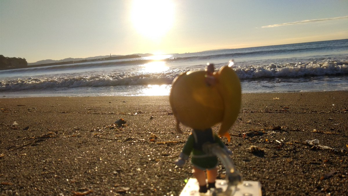 朝焼けの海岸という事でオマケ。 (妄想注意) 駿河湾から少し離れた相模湾に実は恵子も無事に帰還していたというこんな世界線があってもよかったろというif…。 #ザンボット3 #繋がらなくていいから俺のカスタムねんどろいどを見てくれ