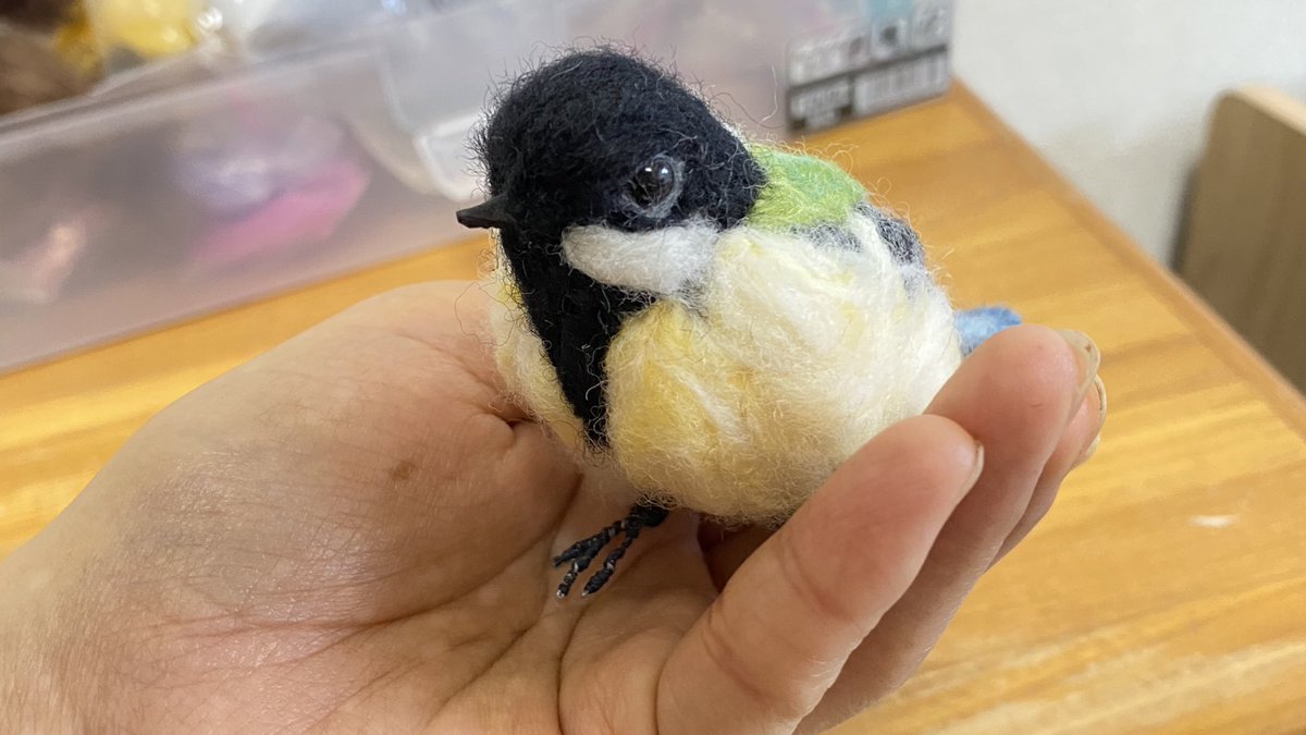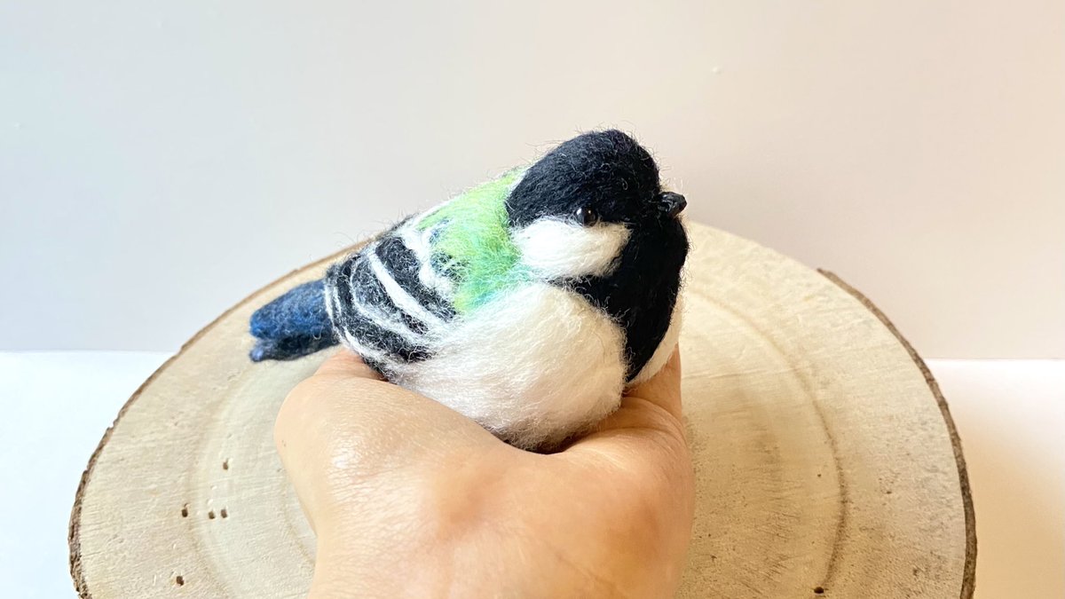 シジュウカラちゃん完成しました✨ つつぴーつつぴー 上目遣いがたまりませんっ❗️️ #みんなで楽しむTwitter展覧会 #秋の創作クラスタフォロー祭り #野鳥撮影 #Twitter文化祭2021 #羊毛フェルト #シジュウカラ