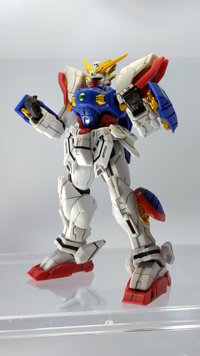 #ガンプラ #ガンプラ好きと繋がりたい #ガンプラの画像貼るとRTされると聞いて #シャイニングガンダム シャーーイニングガンダァァァァム! 完成!パチ組との違いはやばい。白はやっぱりグラデーション塗装じゃないとのぺっとするな。 もっとガシガシ動かしたいけど塗装ががががか。