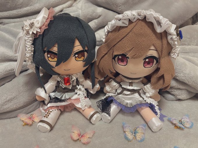 白瀬咲耶と月岡恋鐘のパピロニアフェリークの衣装を作りました〜!!(再掲) 大好きなお衣装作れたの嬉しい〜🥰🥰 5周年!おめでとうございます🎉🥳🥳 #祝シャニマス5周年 #シャニマスつくってみた #シャニマスアート