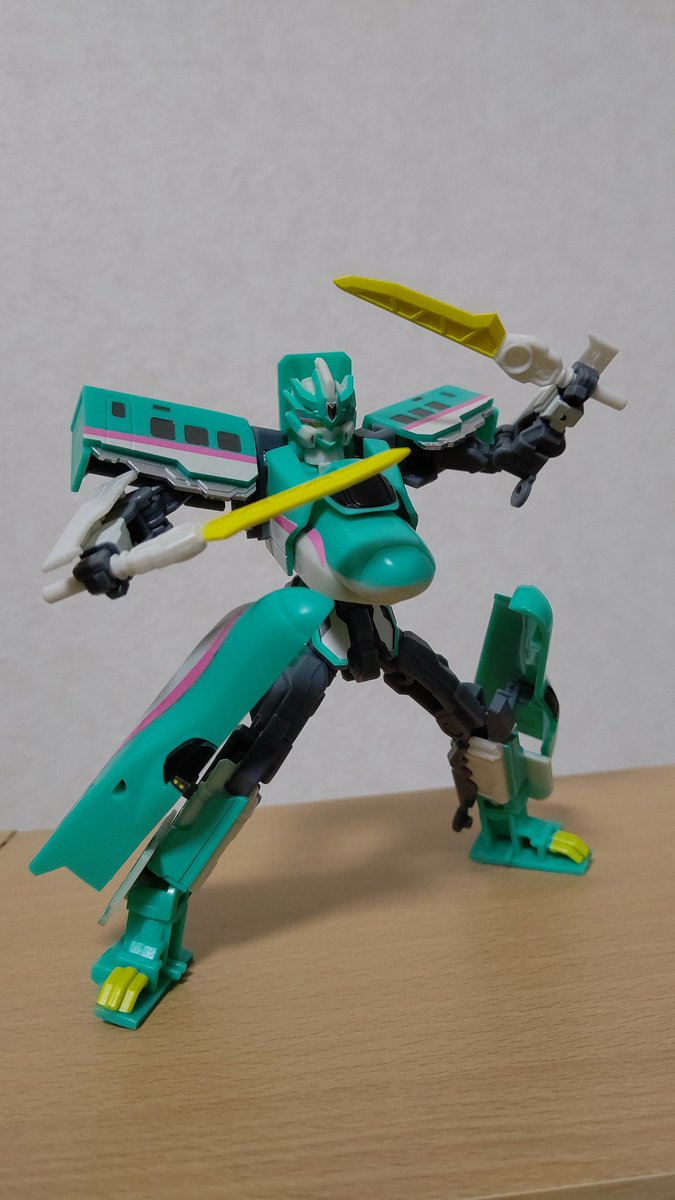 #今月作ったプラモ晒そうぜ #シンカリオンZ コマンドクアンタを目の前で刈られた悲しみを癒すために作ったエフトイズの食玩「チェンジ!シンカリオンZ E5はやぶさ」首が固定されてる点を除けば大満足の一品。