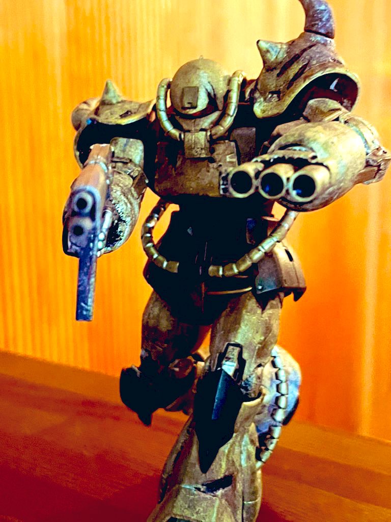 グフ制作しました~ 機体を酷使し続けてる感じです一年戦争の地上戦をイメージしたり #グフ #ジオン #ガンプラの画像貼るとRTされると聞いて #ガンプラはどんな自由な発想で作ってもいいんだ #ガンプラ