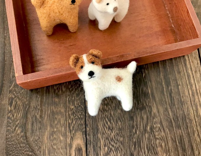 おもちゃを持ってきたジャックさん、仕上がりました✳︎ Creemaにもアップ完了しています✨ 毛色や模様は、その時々のバランスを見ながらランダムでつけています。 一期一会のジャックさん、ぜひ覗いてみてくださいね☺️ creema.jp/c/airashii #羊毛フェルト #ジャックラッセルテリア #Creema
