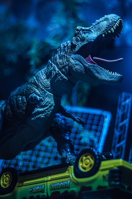 #夜のフィギュア撮影会 お題『フリー』 ジュラシック・パーク! #恐竜 #恐竜フィギュア #dinosaur #ジュラシックパーク #ジュラシックワールド #ティラノサウルス #TyrannosaurusRex #パポ #PAPO #トミカ #ジュラシックパークツアービークル #オモ写