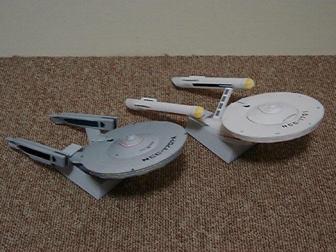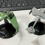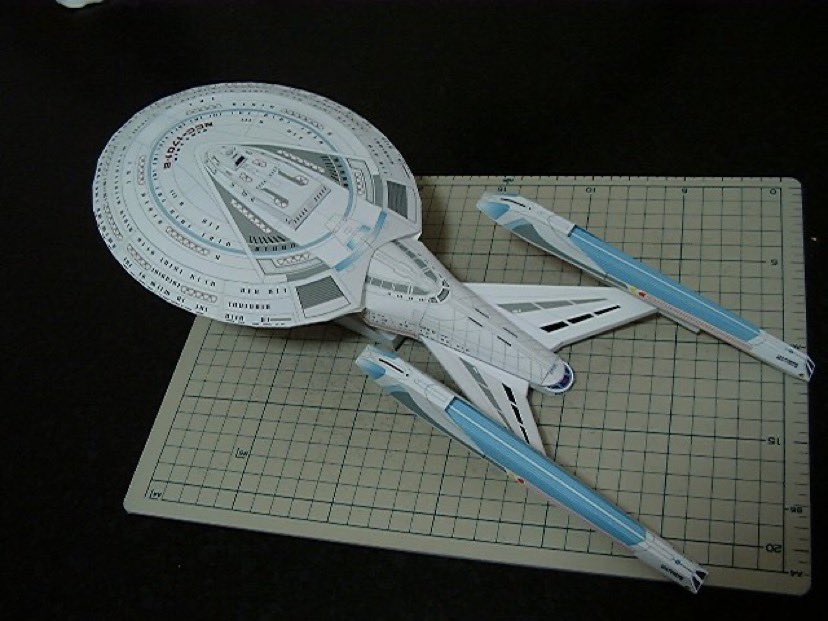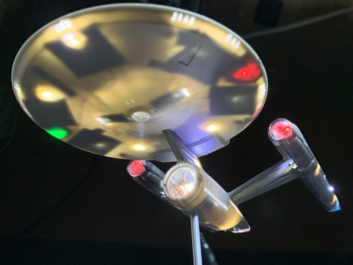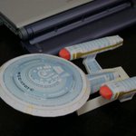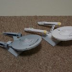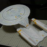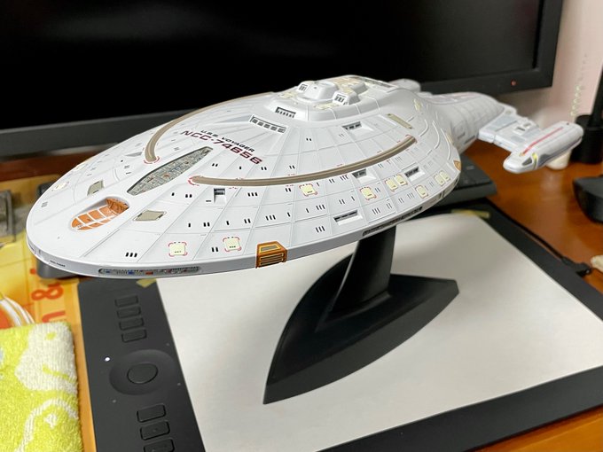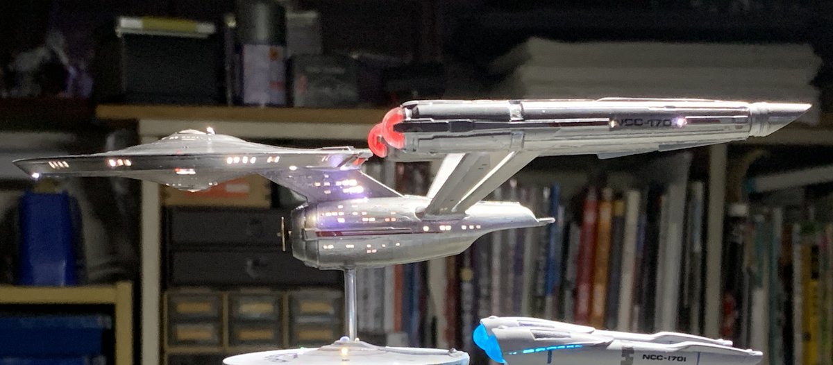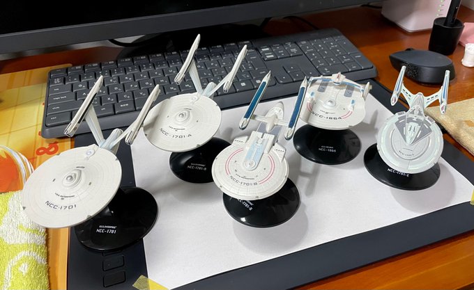 #夜のフィギュア撮影会 5/13 お題 『深』 深宇宙探査船 として活躍し、 銀河の白鳥とも呼ばれる、エンタープライズD TV版と映画版2種揃えてます。 マグネット仕様で船体が分離可能です😊 #スタートレック [既出]