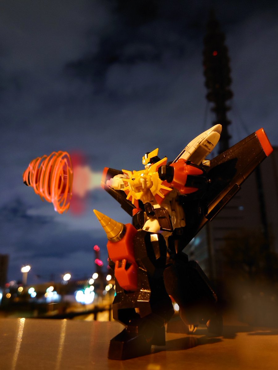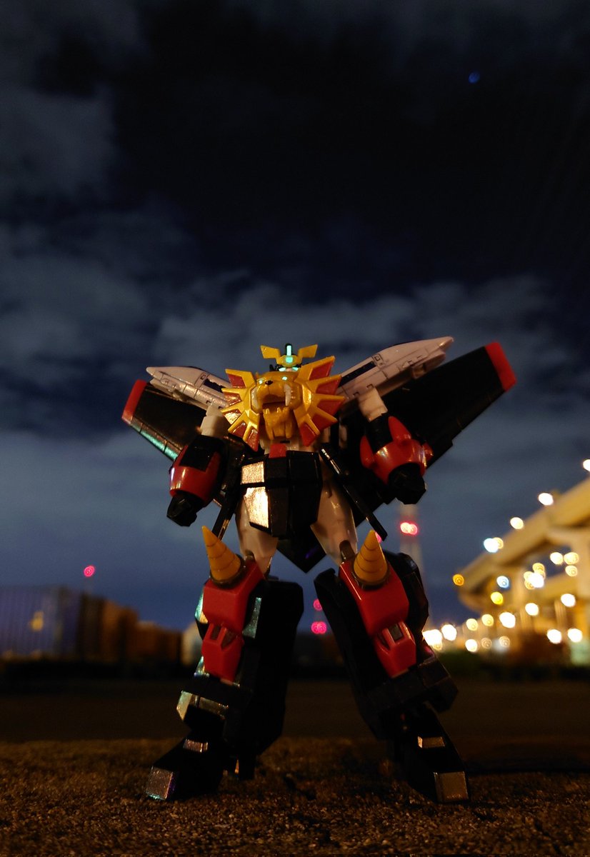 #夜のフィギュア撮影会 #スパロボ30 #ガオガイガー おだい「救」 救世主 スーパーミニプラです。これだけよく動いて、変形合体までするってどうかしてる。Gストーンとか目とか光るようにしてみました。
