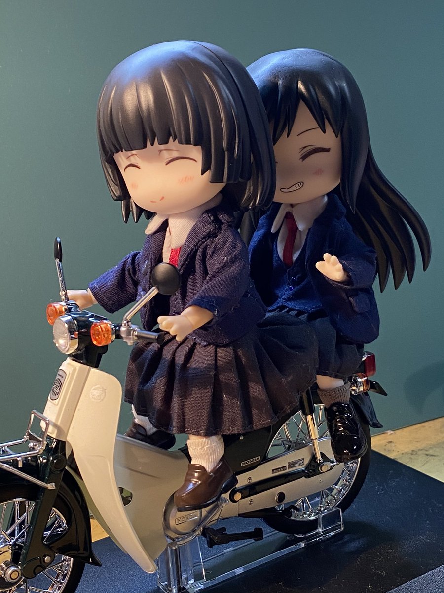 今日はわたしが主役!の礼子さんと、なんか悔しくて前に出てくる小熊さん(´∀`) 皆さんのねんどろ写真見てたら自分も撮りたくなって急遽セッティング #スーパーカブ #礼子生誕祭2022 #礼子生誕祭