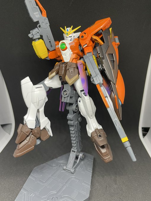 #橙里セイ誕祭2022 #セイッ画 画? セイちゃんお誕生日おめでとうございます。セイちゃんの今日よりの一年が幸福に満ちたものになるようお祈り申し上げます 未熟ながらセイちゃんをイメージしてHGACウィングガンダムゼロを塗装しました。 全体はオレンジに、翼はセイちゃんの羽根飾りをイメージして